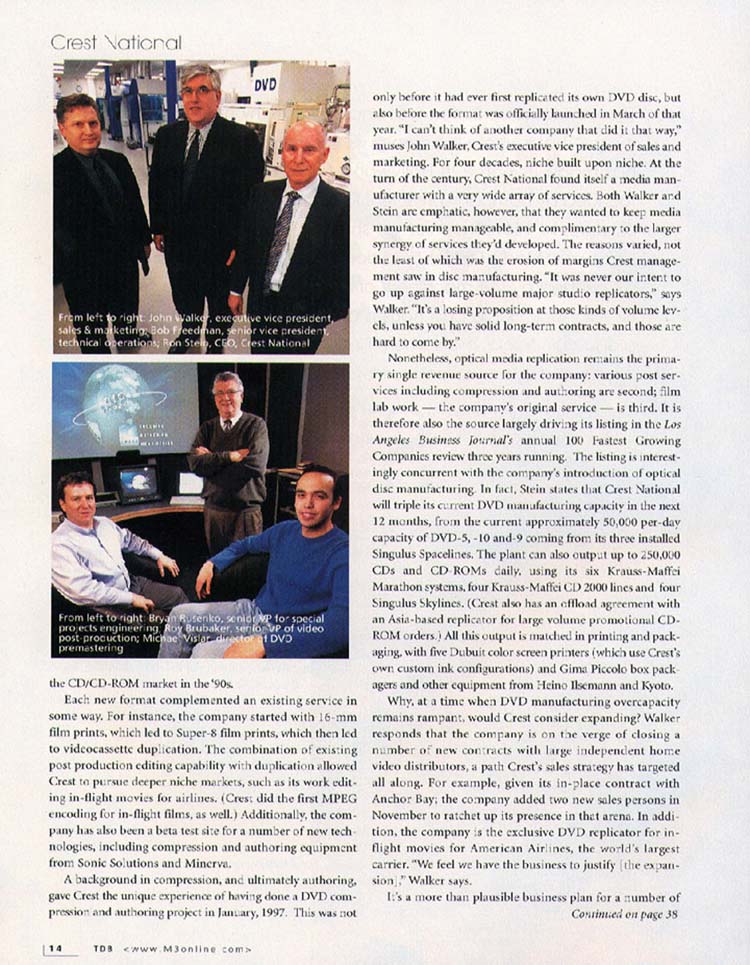 Tape Disc Business Magazine Riding The Wave - Crest Nastional Follows The Vertical Integration Model Into The Future